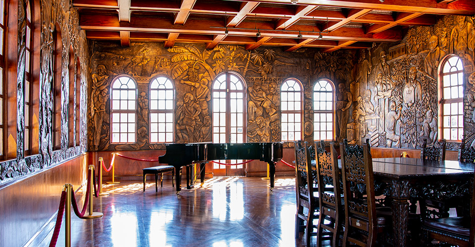 Salón Dorado: era el antiguo salón diplomático del aeropuerto y contiene un mural en estuco (bronce) creado por el artista Louis Féron alrededor de 1940. Representa la historia de Costa Rica desde la época precolombina hasta mediados del siglo XX. mcj.go.cr+2Wikipedia+2